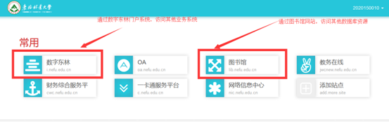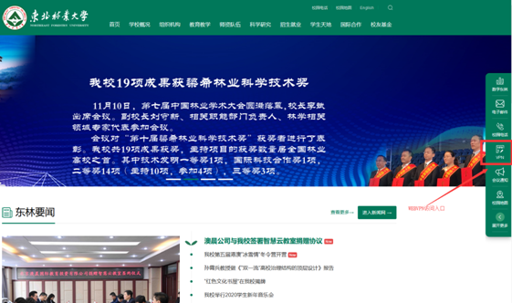 直接在浏览器中输入https://webvpn.nefu.edu.cn跳转至数字东林统一身份认证平台(见图2)。