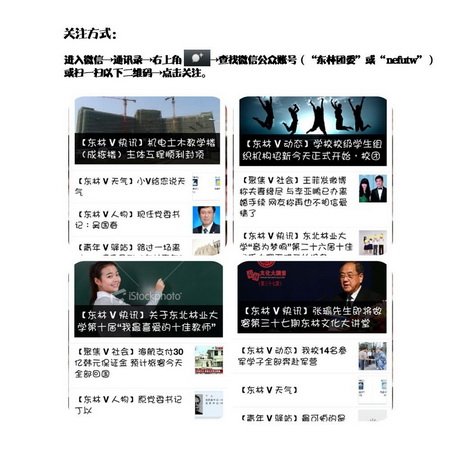 微信是当下深受青年学子喜爱的社交软件,校团委为更好的服务广大青年,进一步完善共青团新媒体宣传平台,现已建立并开始运行“东林团委”微信公共平台(账号:nefutw)。“东林团委”微信公共平台将及时推送校园新闻简讯、发布校园文化活动信息、宣传校园典范人物以及各种关系beat365师生学习生活的通知公告,方便beat365师生学习和生活。