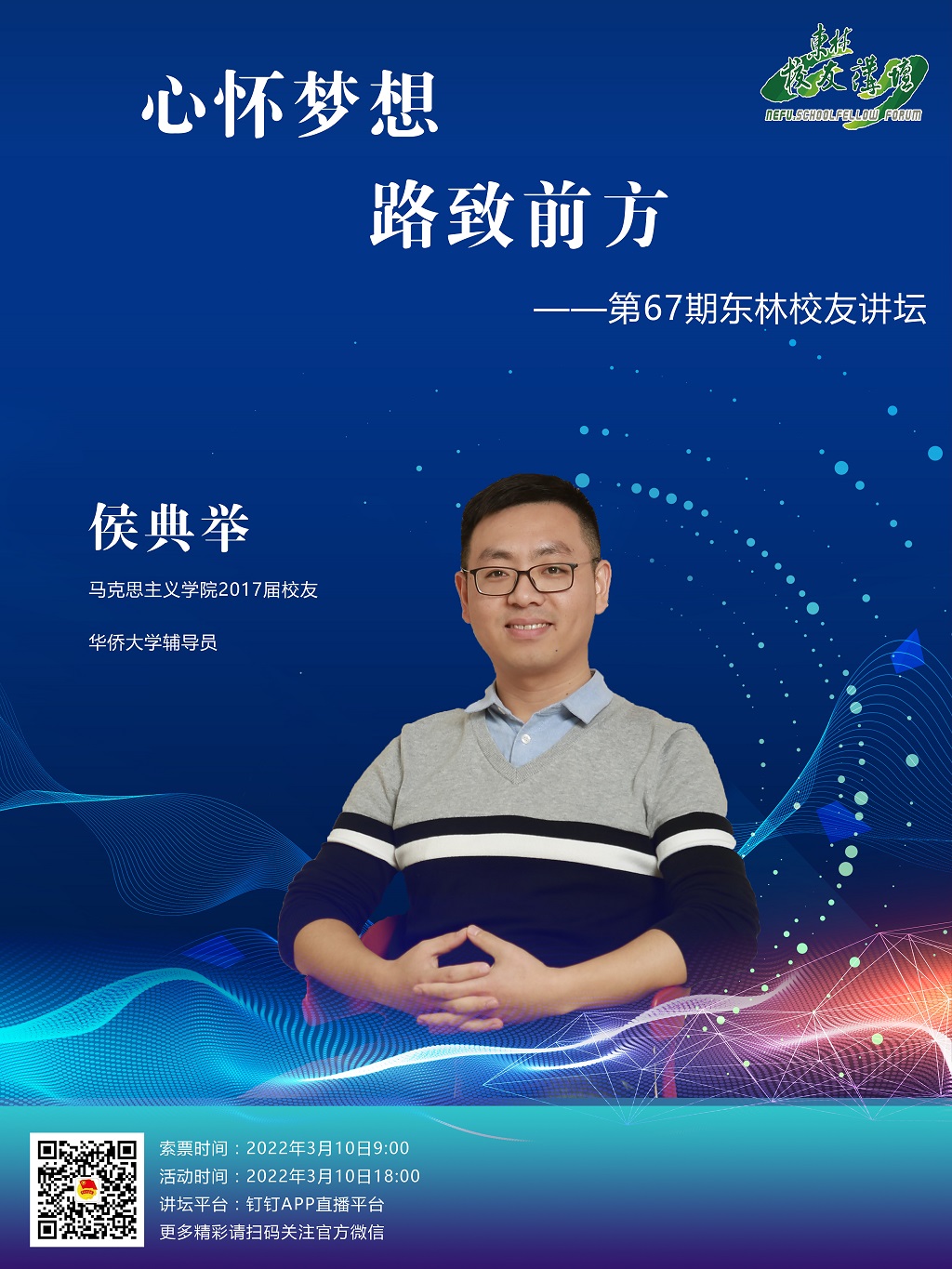 侯典举校友将结合自身学习工作经历,分享他的科研心路历程和作为思政工作者的收获感悟。