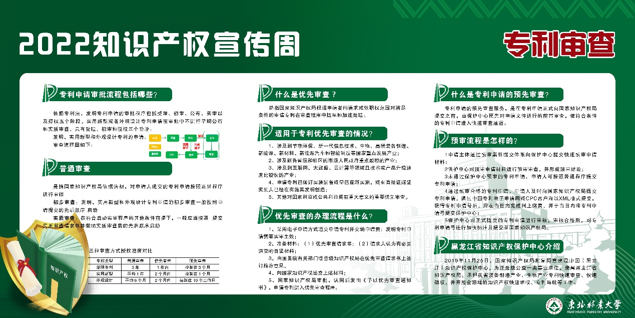 知识产权线上宣传,围绕着2022年世界知识产权日和全国知识产权宣传周的主题,共展出11块知识产权相关知识展板,包括知识产权日科普、知识产权系列知识简介、专利检索与查询方法、专利审查途径等4个方面内容。通过线上展示宣传,提高学校师生知识产权意识,营造知识产权保护氛围。