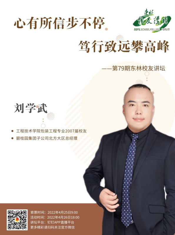 本期校友讲坛,刘学武学长将结合自身学习、工作经历与奋斗历程,为同学们讲述一段力学笃行、拼搏进取的进取人生,分享他对大学生职业规划的独特见解以及就业经验,帮助同学们明确学习目标与未来规划。