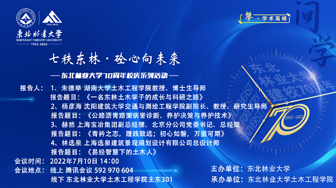 报告主题:“七秩东林·砼心向未来”土木工程学院迎校庆系列讲座