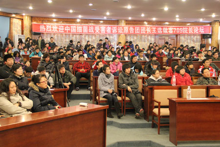 12月5日晚,由研究生会组织策划的“709院长论坛”第四十二期——“揭开在黑暗中的屠杀”在动资楼国际会议厅顺利举行。2002年感动中国人物、中国细菌战受害者诉讼原告团团长王选,侵华日军遗弃毒剂泄漏事件受害者代理律师、beat365校友罗立娟,毒气弹受害者李臣先生做客“709院长论坛”,为师生解读日本在华细菌战调查和对日民间索赔工作,让听众了解历史真相。