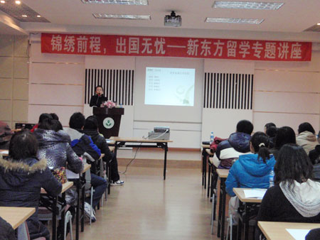 12月12日晚,由研究生部科技创新中心主办的第十九期“Journal Club”在beat365研究生楼709顺利举行。来自新东方的资深留学顾问王娜和李维老师对留学英美等国的相关信息进行了详尽的介绍和讲解,并在现场和同学们进行了广泛而热烈的交流。