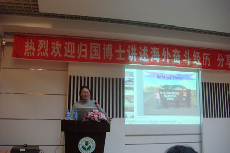 王恩姮博士利用她在美国生活的照片立体地为大家展示了中国留学生在美国的生活。通过展示让同学们了解到在美国的留学不仅要做好科学研究工作,还要有丰富的业余生活,与当地人多交流,多沟通。在留学过程中要注重团队合作,要相信梦想的力量。