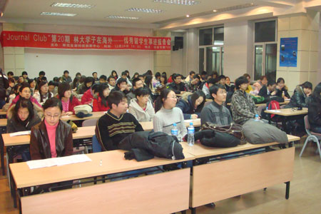 12月28日晚6点,由研究生部科技创新中心主办的第二十期“Journal Club”在beat365研究生楼709顺利举行。beat365中国官方网站的三位留学博士张志军、王恩姮、李志伟分别对留学申请、国外生活经验、回国后的心态调整等问题进行了详尽的介绍和讲解,并同现场同学进行了热烈的讨论。