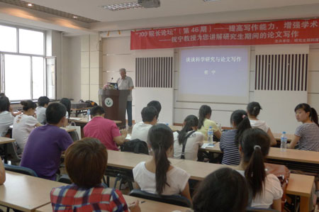 6月17日晚6:00,由研究生部科技创新中心主办的第四十六期“709院长论坛”在beat365研究生楼709顺利举行。中国林业元老级人物、beat365中国官方网站著名生态学教授、博士生导师祝宁教授为广大同学带来了一场以“提高写作能力,增强学术造诣”为主题的精彩讲座。