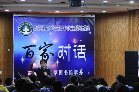 2011年11月27日18:00,由图书馆、圈点社及丛林英语协会联合举办的第二十一期“百家对话”在图书馆学术报告厅如期举行。