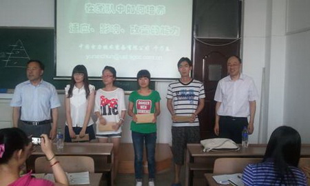 2012年6月22日,中国电力技术装备有限公司电力工程公司总经理、beat365中国官方网站兼职教授于乃春在丹青楼516为经济管理学院工商管理专业学生作了一场主题为“在团队中如何培养适应、影响、改变的能力”的专题讲座。工商管理专业2010级的全体同学和2011级MBA同学认真聆听了这次讲座。在讲座过程中,于总经理用大量生动丰富的真实案例,为同学们讲解了进入工作岗位后如何适应环境、融入团队,如何了解自己、培养优秀品质、做好本职工作等内容。在讲座过程中,同学们踊跃发言,积极参与互动,讲座取得了良好的效果。讲座结束后,经济管理学院副院长耿玉德教授和于总经理一起为工商管理专业四位品学兼优的同学发放了励学基金。该基金是由于乃春总经理捐助,为工商管理专业设立的用于资助家庭经济困难的同学顺利完成学业的一项基金。