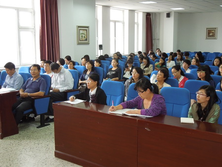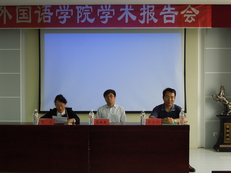 9月12日下午1:30分,同济大学外语学院院长、博士生导师马秋武教授来到外国语学院作了题为"对大学英语教学现状与未来的思考"的讲座。讲座由外国语学院副院长郭永刚教授主持,院长王丹教授致欢迎辞。副院长岳喜华教授及外国语学院全体教师和部分学生参加了讲座。