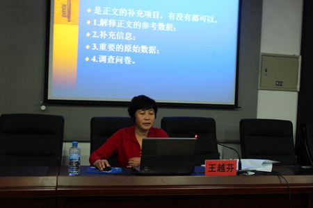为指导研究生更好地进行学位论文的写作,2012年11月7日下午,马克思主义教学研究部副主任王越芬教授在文博楼921会议室为本部师生作了一场题为《研究生学位论文开题报告及学位论文的写作》的专题讲座,此次讲座是马研部喜迎党的十八大召开系列讲座的第三场。