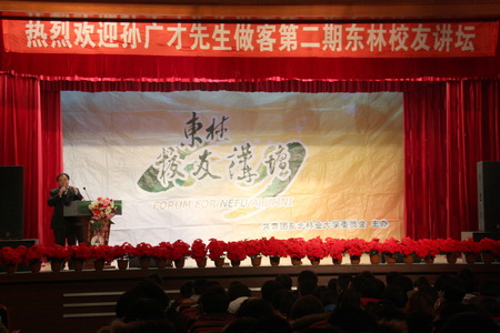 孙广才校友首先讲述了自己在大学之前坎坷的学习经历,他凭着坚强的毅力和不服输的精神,克服了学习底子薄、家庭条件差等困难,终于在1983年考入了“梦开始的地方”——东北林学院,经过努力还以东林第一个“专科免修生”的身份参加了外教班的学习,孙老师细致地回顾了他在东林学习期间的“寻梦之旅”,回顾了他如何穿梭于图书馆与教室之间,刻苦努力学习的经历,他用自己接待外宾、勤工助学的经历鼓励同学们珍惜大学学习时光,努力找寻自己的“梦想”。接着,孙老师带着同学们来到了他“梦实现”的阶段,介绍了自己在创业初期的奋斗历程,阐释了扎实的专业知识和良好的学习能力对创业的重要作用,他还结合不同阶段的时代背景告诉同学们,在学好专业知识的同时还要具备良好的内部、外部沟通能力和对全局的调控能力。在“梦随专业飞翔”的阶段,孙老师向同学们展示了他在国外开展贸易洽谈的一些照片,凭借他在外语、毛皮和贸易等方面的专长,他在贸易场感受到了成功的喜悦。孙老师用风趣幽默的语言向同学们传递了人生的深刻哲理,在他的身上有商界打拼的成熟风采,也有大学师者的风范,更有东林精神的传承。
