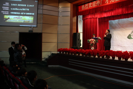 在互动环节,同学们积极参与提问,孙老师就人生发展目标的动力问题和如何调整心态做出了深刻的回答。讲座最后,应同学们的要求,孙老师用纯正地道的英语,表达了近30年来对母校的感激之情以及对同学们的殷切希望,赢得了全场师生的热烈掌声。