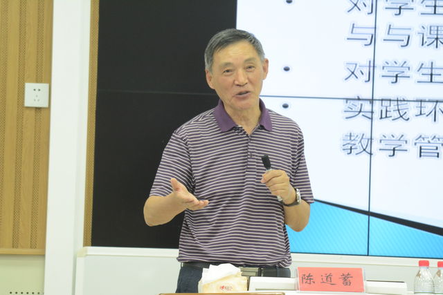 陈道蓄教授结合多年的工程教育认证经历和感悟,对认证的“基于产出”的思想准备、“国际实质等效”的内容准备、“分解与支撑”的目标准备、“内部评价”的机制准备、“复杂工程问题”的关键是能力培养及当前专业认证存在的主要问题进行了阐述。陈老师指出,面向产出的教学评价的核心是学生学得怎么样,对学生的培养目标与毕业要求是否明确,设定的目标与要求是否达成;产出导向的核心理念是以学生为中心、目标导向、持续改进;实质等效的参考框架包括学生必须掌握的知识、毕业生能力要求、专业能力的表达及解决复杂工程问题与复杂工程活动的能力。在认证操作实践中如何抓住标准的核心?他认为,需要理解好标准内容与 “国际实质等效”关系,标准的内容与毕业生产的关系,在 “基于产出”的前提下理解标准含义。陈教授认为,在专业认证过程中,毕业要求、持续改进、课程体系是较难把握的三个标准,其中毕业要求是理解并能够完全“覆盖”标准要求,持续改进要求真正有“办法”自查,课程体系能保障“达成”的结论确实“查有实据”。同时,陈教授通过案例形象而生动地表述了解决复杂工程的能力的培养途径,需要通过基础课培养基本技术能力,通过专业基础课与专业课(含实践)培养专业技术能力,通过综合实践课程培养“工程”能力。他还指出,内部评价机制的核心是面向产出的课程评价,并指出了当前内部评价需要改进的地方,明确了改进的措施。陈教授强调,工程教育认证工作贯穿于教学的整个环节,目标与毕业要求必须对日常教学活动起导向作用,并有利于每位承担教学任务的教师明确责任,每位教师在持续改进中均承担责任。